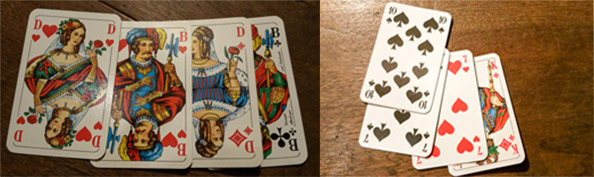 Norbert hat das Aufspiel mit Kreuz Bauer. Wilfried wirft seinen Karo König ab. Und so kam es wie es kommen musste. Norbert spielt die Karo Dame, Wilfried kann Karo jetzt nicht bedienen und schon wars um Wilfried geschehen.