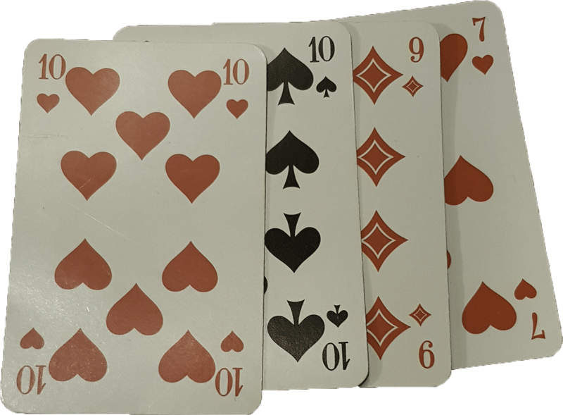 Dirk hat das Aufspiel mit Kreuz Dame, Peter legt Herz Sieben. Dirk legt Kreuz Bube, Peter Karo 9. Dirk spielt anschließend Karo König. Und dann die entscheidende Frage . Welche 10 legt Peter hin - natürlich die Falsche, nämlich Pik 10.0.