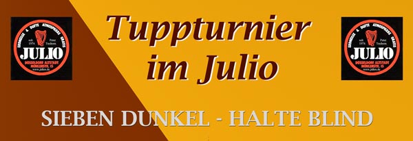 Am 25.03.2016 findet das alljährliche Tuppturnier im Julio statt. Unter dem Motto "SIEBEN DUNKEL - HALTE BLIND" wird der ewige König des Julios gekürt.